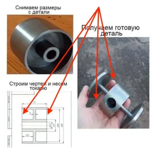 на разрезе (на чертеже) видно, что есть линии, означающие, что там есть часть детали, если разрезать то, что сделал токарь - этого материала там не будет.