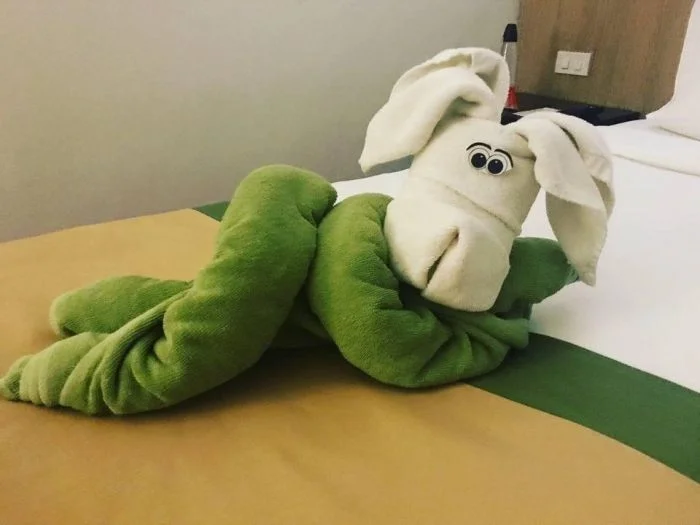 Когда полотенечные лебеди больше не удивляют, гостиничные уборщицы решают поразить гостей текстильными скульптурами или неожиданными дизайнерскими находками. Такие сюрпризы, вызывающие у кого-то улыбку, а у других недоумение, заставляют людей хвататься за телефоны, чтобы поделиться увиденным в сети.