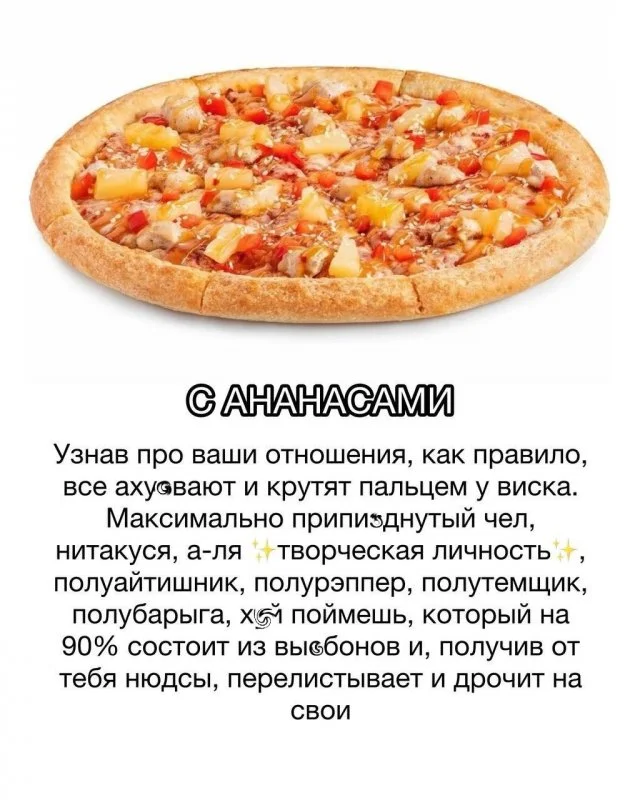 Девушки с просторов соцсете продолжают сочинять небанальные и забавные исследования отношений. Например, в этот раз они сравнили парней с пиццей. Ну, что, девочки, есть совпадения?