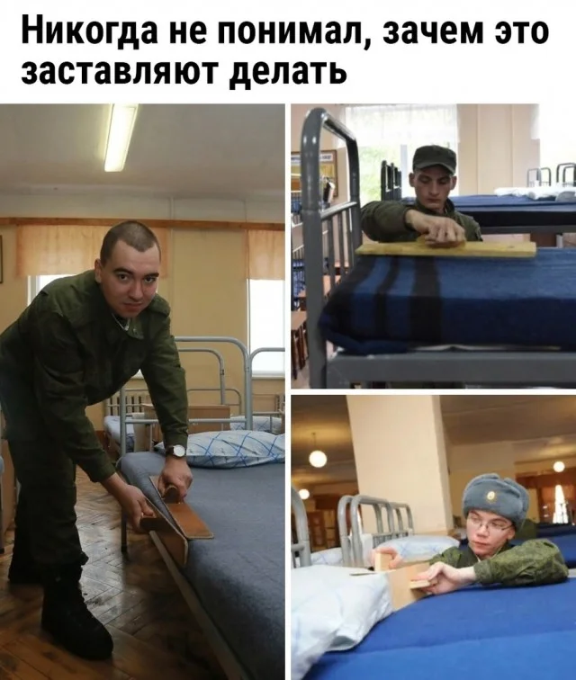 , и полосы на одеялах по веревке. Чем бы солдат не занимался, лишь бы зае..., устал очень.