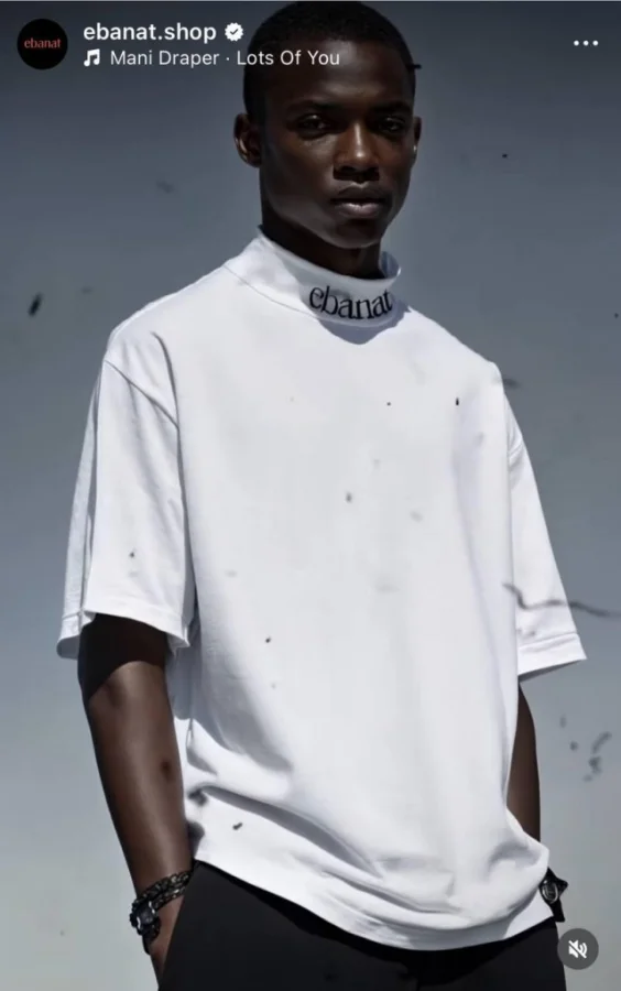 Так, в конце января бренд разместил видео, в котором нигер позировал перед камерой в белой футболке с высоким воротником. На размещенных кадрах видно, что на нем присутствует надпись Ebanat, напечатанная черным шрифтом.