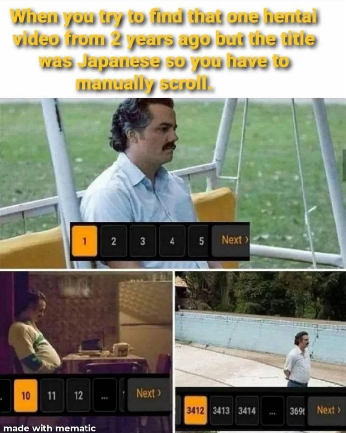 Когда пытаешься найти то самое хентай-видео двухлетней давности, но название было на японском, поэтому приходится прокручивать вручную.