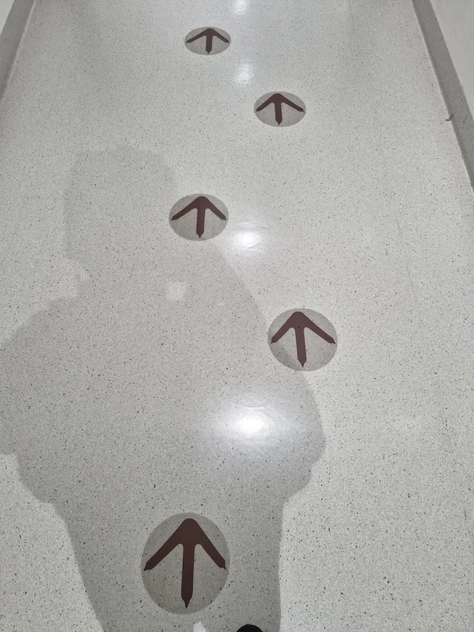 Направляющие указатели в местной больнице оформлены в виде следов лапок киви