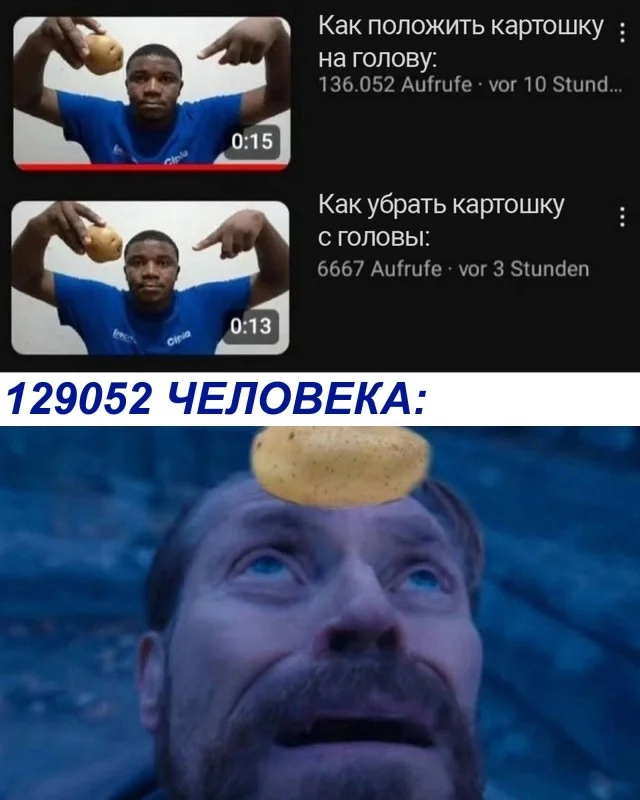 И че, картоха на голове держится? Не совсем понятно. 😁