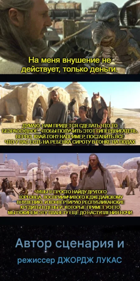 Франшиза "Звездные войны" представляет собой уникальное сочетание жанров, включая драму, фантастику, фэнтези, триллер и приключения, что делает её невероятно богатой и разнообразной. Этот мир не только увлекает зрителей захватывающими сюжетами, но и породил множество мемов, которые стали частью поп-культуры за последние десятилетия.