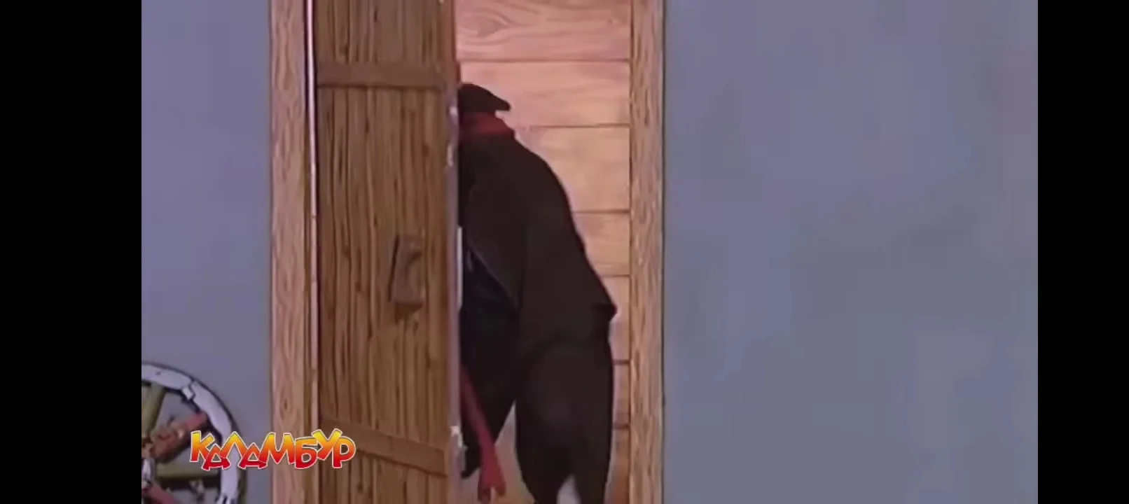 , специально посмотрел. Приоткрытии двери видна голая стена. А должна быть видна печь и стол.