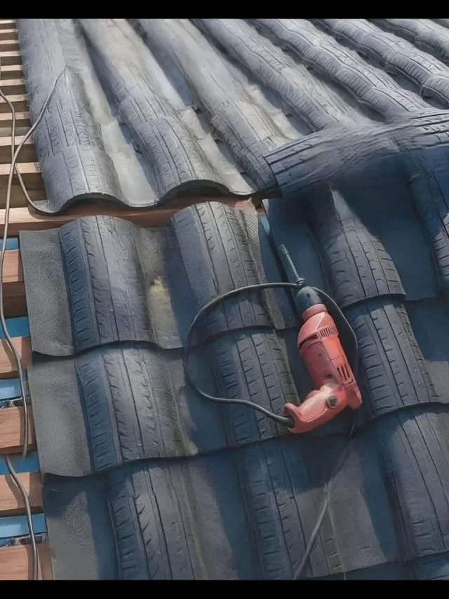 Черепица из покрышек - это ж сколько надо было трахаться, чтоб их так нарезать?