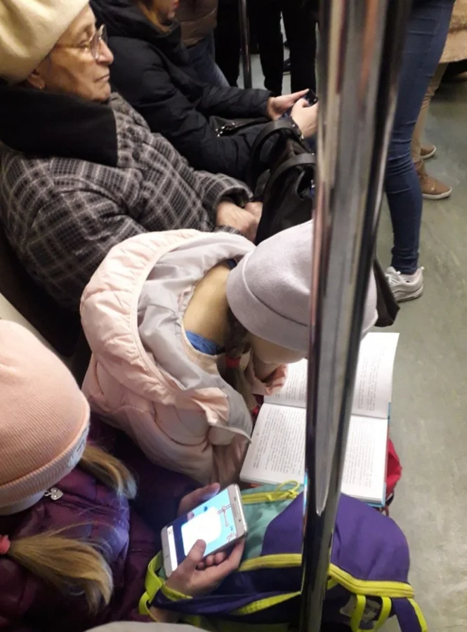 Пока одна девочка увлечена книгой, другая предпочитает смартфон.