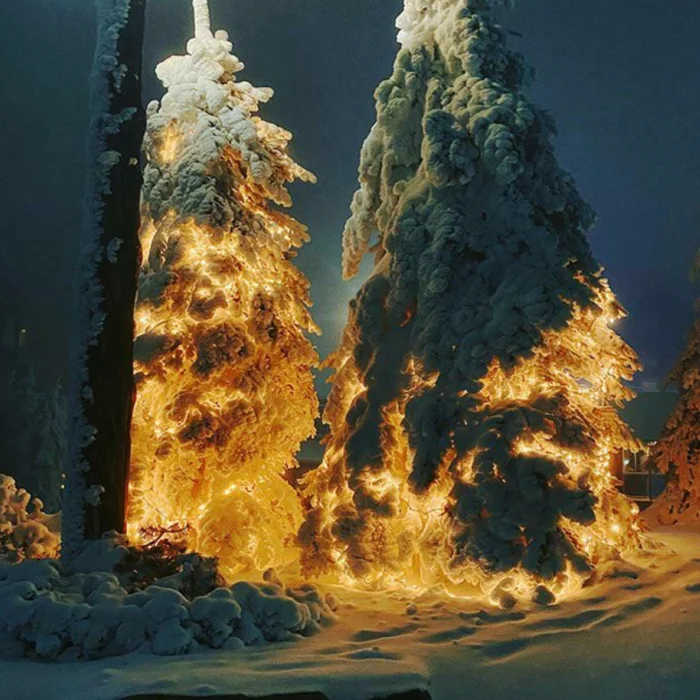 Эти ёлки не охвачены огнём, а просто присыпаны снегом