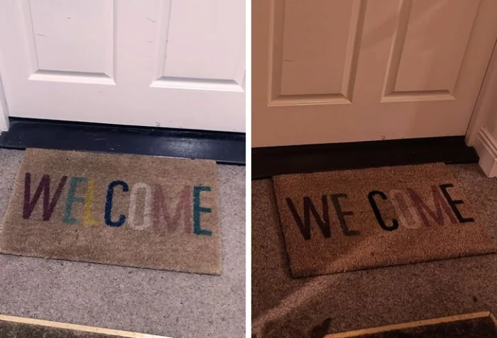 8. Проблема с нечитаемым текстом встречается не только на упаковках. Вот коврик, на котором буква L вечером не видна