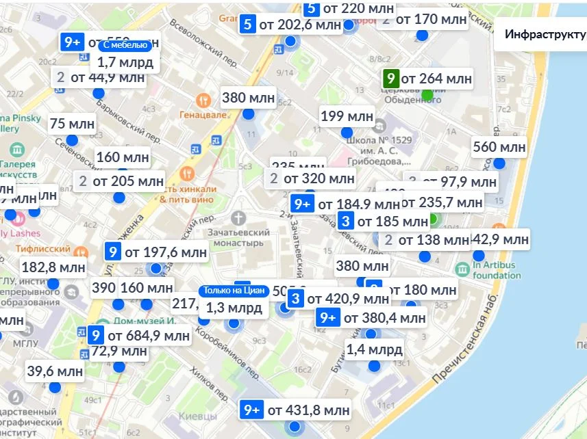 как вам цены на квартиры = от 150 млн до 2 миллиардов !! руб