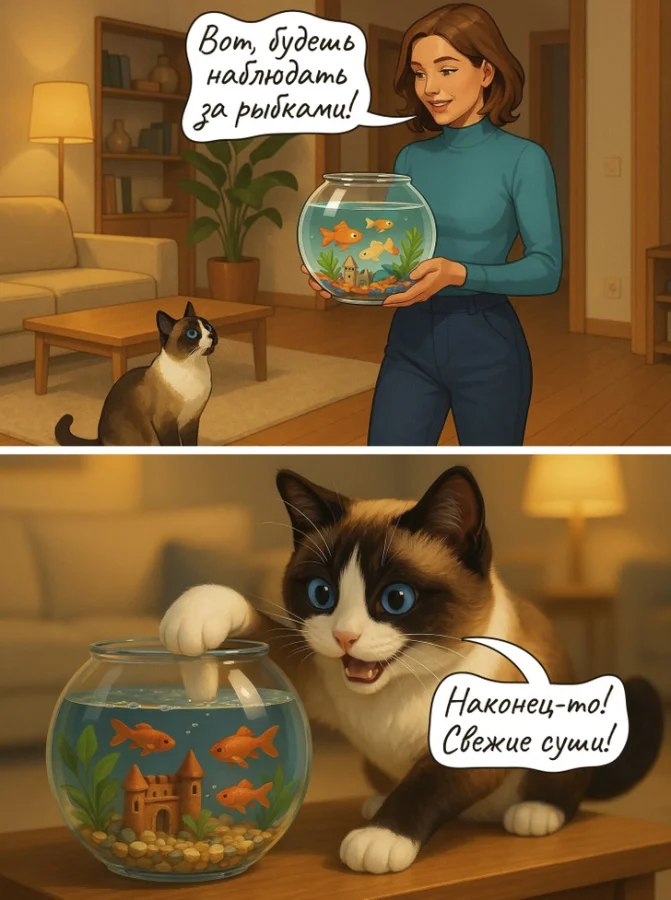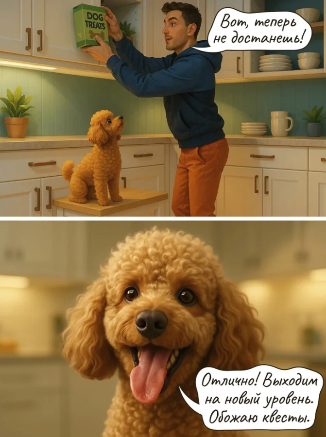 Все мы воспринимаем наших питомцев как полноценных членов семьи. Но задумывались ли вы когда-нибудь, насколько по-разному выглядит один и тот же день в глазах хозяина и его четвероногого друга? Обычная прогулка в парке, визит к ветеринару или даже момент, когда вы достаете корм, — на все эти рутинные моменты в нашей общей реальности всегда найдется две точки зрения. Именно этот забавный контраст восприятия и лег в основу нашей подборки комиксов.