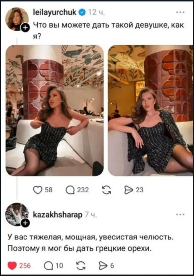 Ей могу дать только в рот. Ну или в такую челюсть...