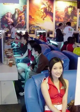 Эти девушки обучают работе на компьютерах в одном Интернет-кафе в Китае.