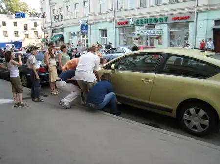 Записано со слов автора фотографий: "В тему блондинок. Вот днем увидел. Не успел - но народ сказал за рулем была блондинка. Лично мне хотелось ей на капоте написать про её подаренные права. Странно, а можно ли вызывать ментов что б они у этих идиотов права отбирали. Жаль так никто её не дождался, что б в глаза поглядеть...