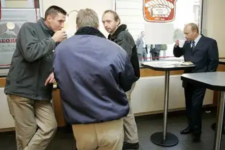 Путин пьет кофе с немецкими рабочими в Дрездене