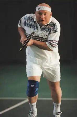 Лужков играет в теннис