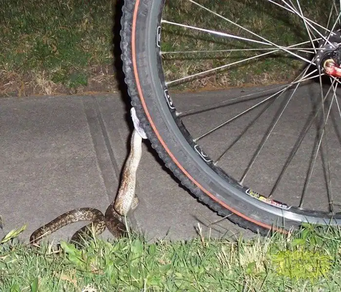 Змея пытается сожрать велосипед !