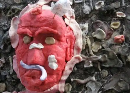 Как, когда и почему - непонятно, но это стало традицией, ожидая входа в театр, прилепить жвачку на стену. Первое время работники театра как-то боролись с этим, но потом плюнули и стена превратилась в огромную фреску из жвачки.