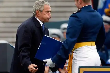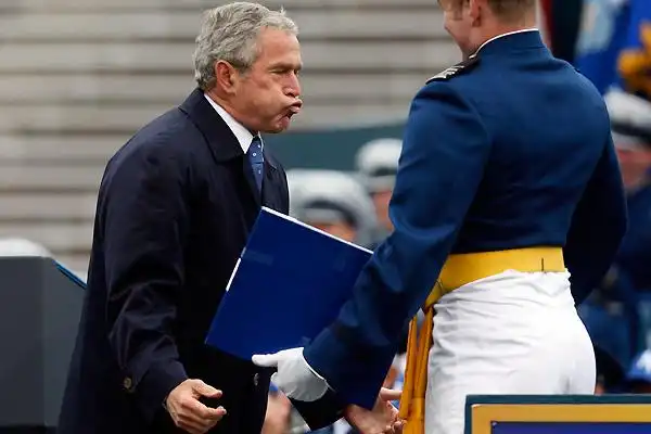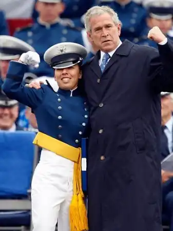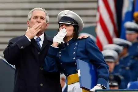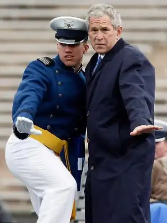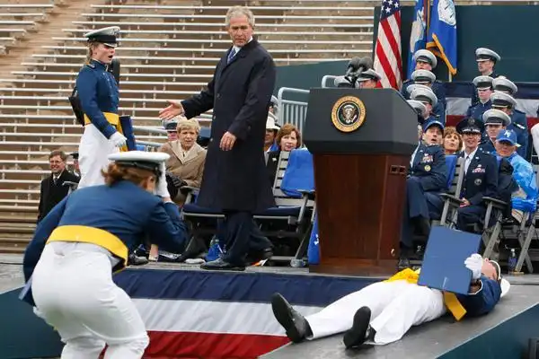 Президент США Джордж Буш (George W. Bush), второй срок которого истекает в этом году, весело провел время на церемонии выпуска Академии ВВС США, которая состоялась в городе Колорадо-Спрингс, штат Колорадо.