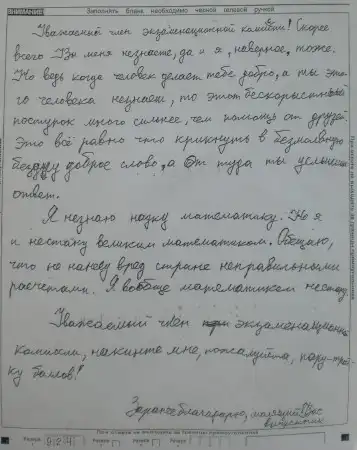 Как известно сейчас пора вступителных испытаний в ВУЗы. В ТПУ не так давно прошел вузовский этам ЕГЭ по математике. И вот какое решение было представлено одним из абитуриентов на часть заданий С.