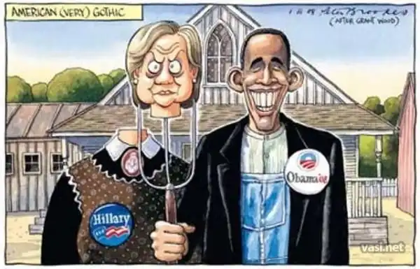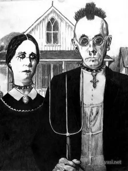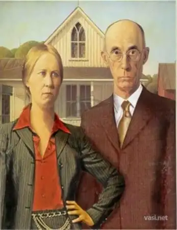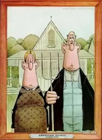 «Американская готика» — картина американского художника Гранта Вуда, созданная в 1930 году. Один из самых узнаваемых образов в американском искусстве XX века. И как любая картина-символ она стала источником вдохновения для множества людей. Пародии на нее можно встретить в фильмах, клипах, мультфильмах, комиксах.