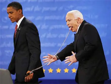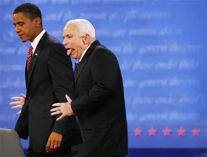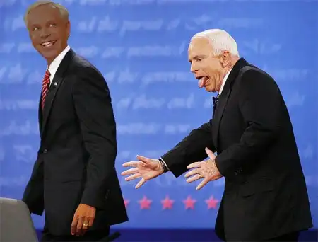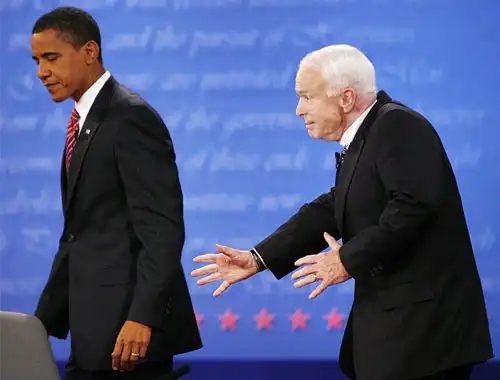 Так Джон Маккейн отреагировал, когда он понял, что пошел не туда, чтобы спуститься со сцены по окончанию дебатов.