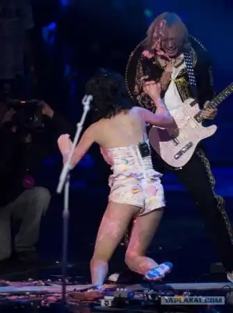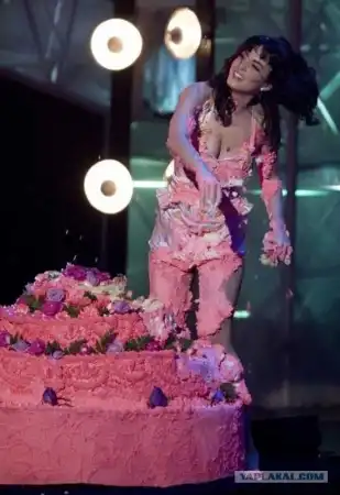 Некая Кейт Перри во время своего выступления решила немного подсластиться и... прыгнула в торт.