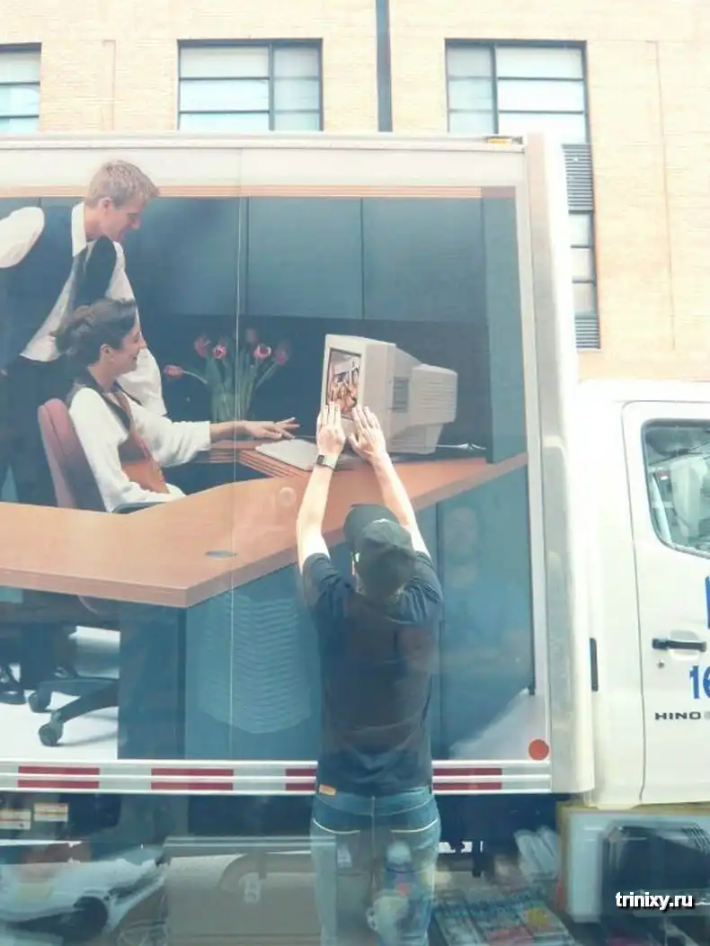 В один прекрасный день около одного офиса припарковался грузовичок с какой-то глупой рекламой, тем самым закрыв вид на окна другого офиса.