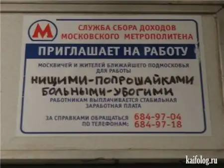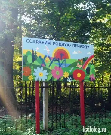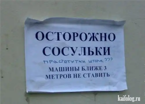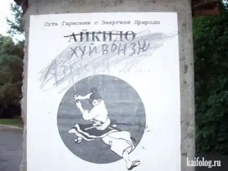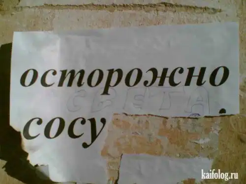 Веселый у нас народ: увидит надпись какую-нибудь и обязательно им надо буквы стереть, переставить местами или что-нибудь дописать. Посмотрите интеллектуальные шедевры от русского народа. С юмором у нас все нормально. :)