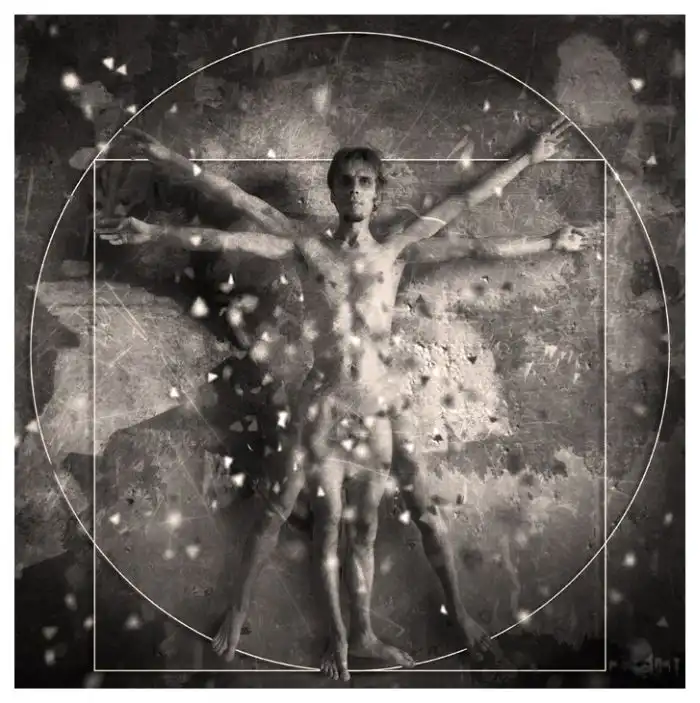 Когда-то очень давно да Винчи нарисовал своего витрувианского (произносим имя громко и с выражением) человека и, естественно, кто-то решил его скопировать. Правда странно они его копируют...