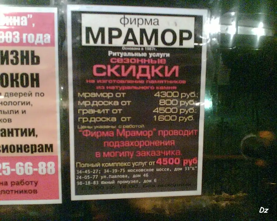 В этой рекламе меня больше всего заинтересовала фраза "дозахоронение в могилу заказчика". Интересно, с какого света является сам заказчик?...