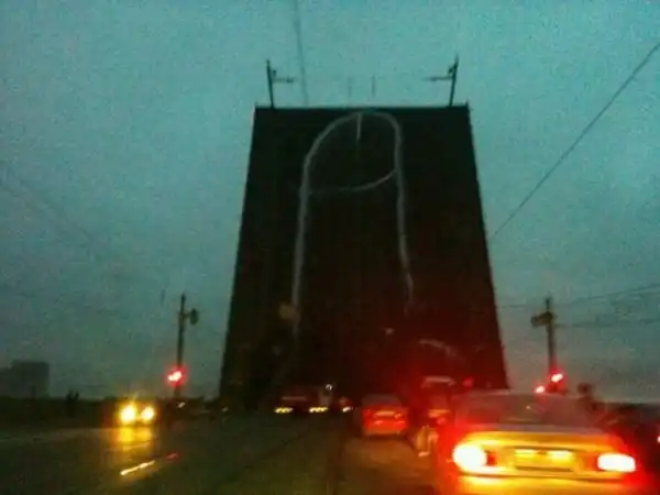 Какие-то “художники” изобразили на Литейном мосту в Питере огромный мужской орган.