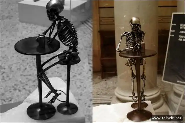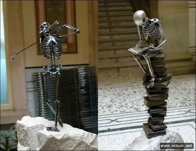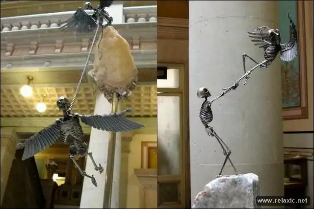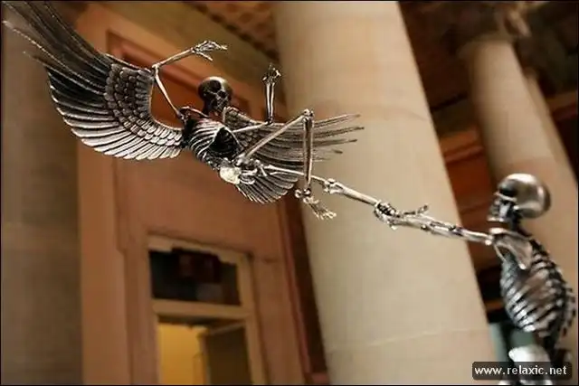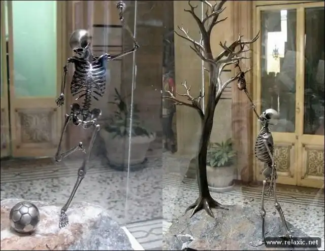 Мексиканский скульптор Сол Эрнандез (Saul Hernandez) создал коллекцию из 21 скелета (каждый 21 см ростом) и назвал ее “208 OSEOsidades”. Оптимистичной ее назвать никак нельзя, потому что скелет традиционно является символом смерти. Но с другой стороны эти работы заставляют задуматься о том, что все мы равны – вне зависимости от комплекции, вероисповедания или цвета кожи. И можно друг на друга посмотреть непредвзято, без внешней мишуры.