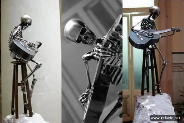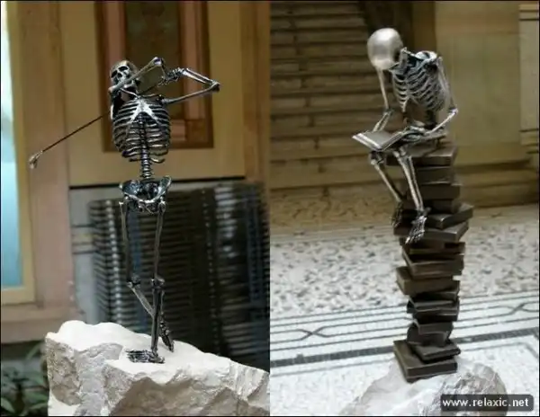 Мексиканский скульптор Сол Эрнандез (Saul Hernandez) создал коллекцию из 21 скелета (каждый 21 см ростом) и назвал ее “208 OSEOsidades”.