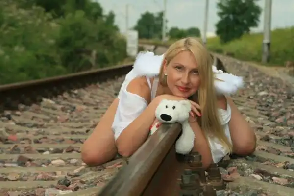 Или даже так: Головожопый Какангел С Плюшевой Игрушкой На Рельсах!