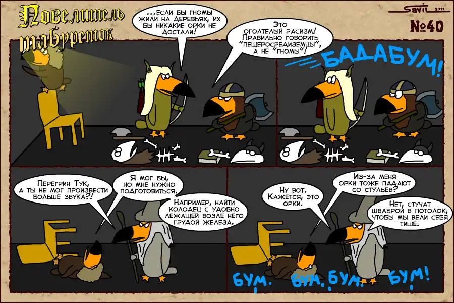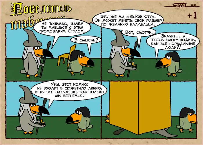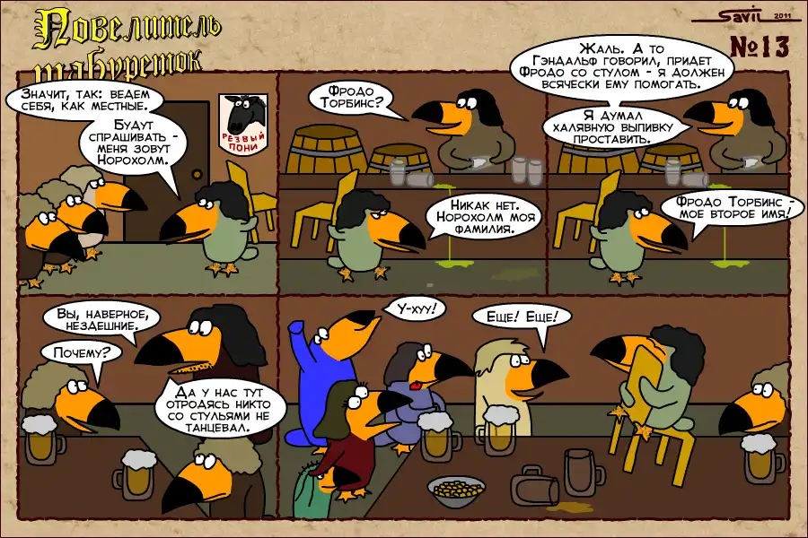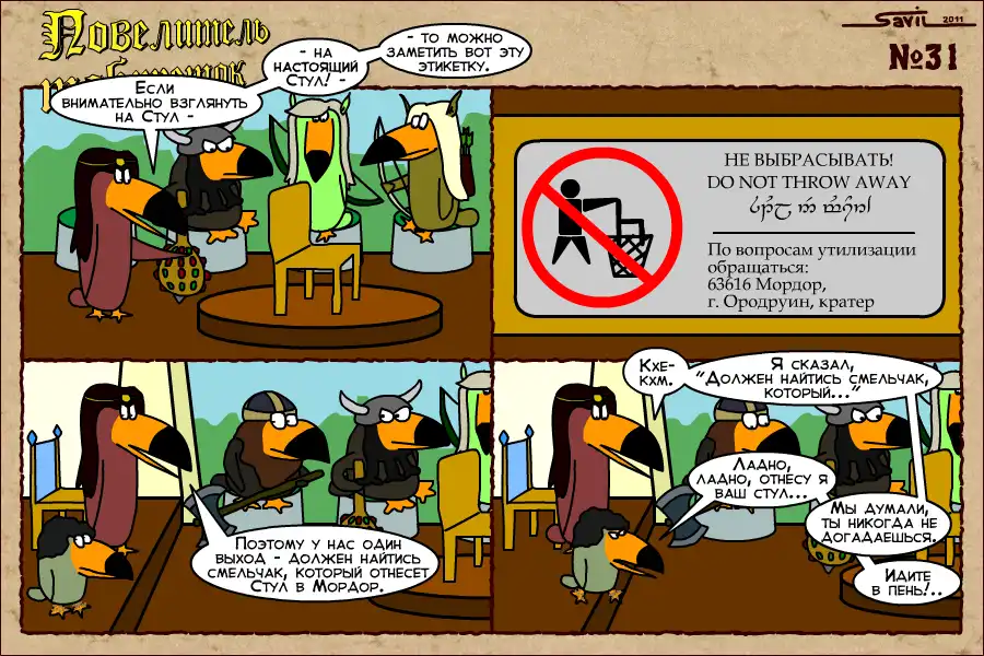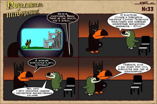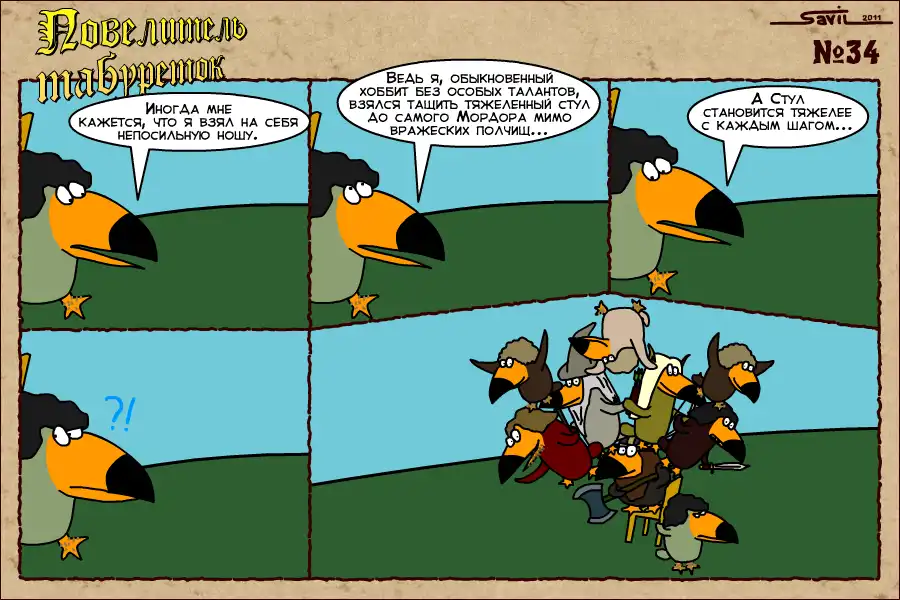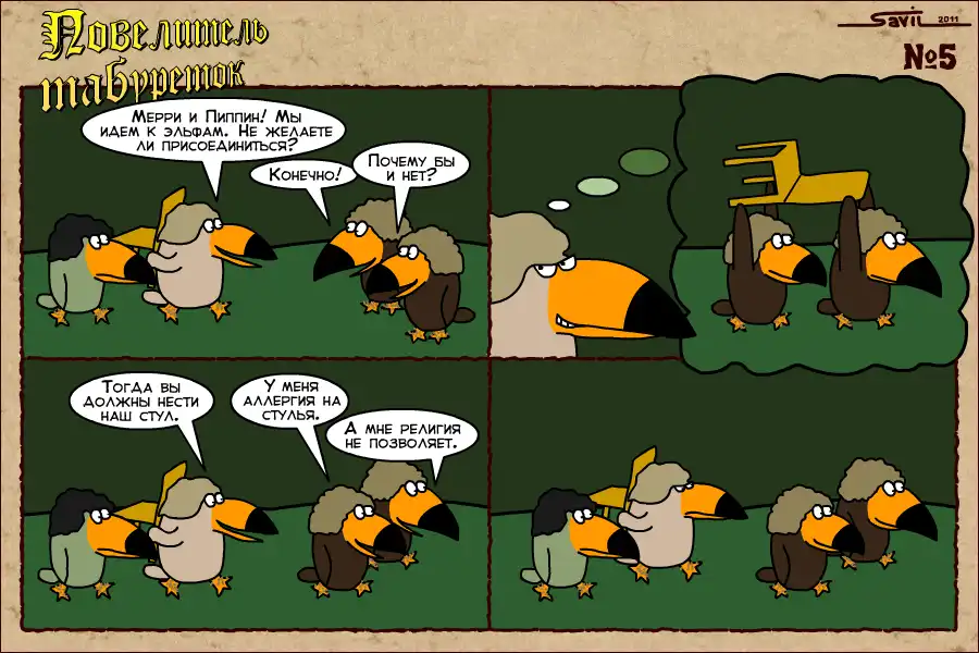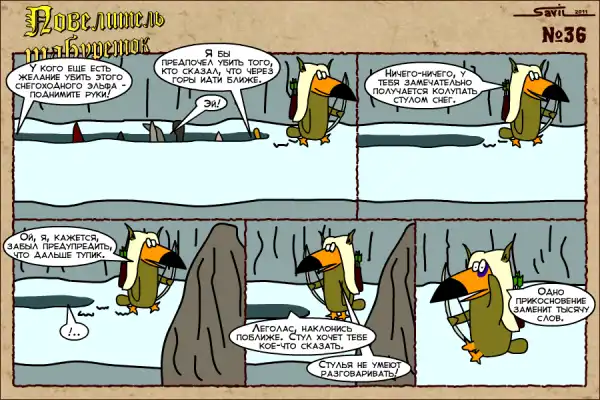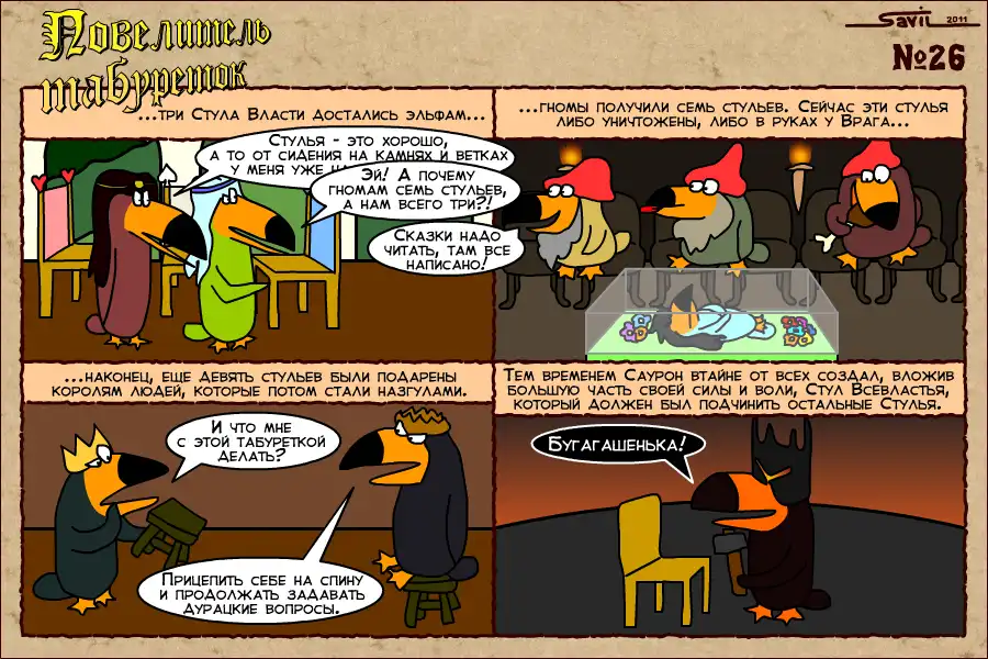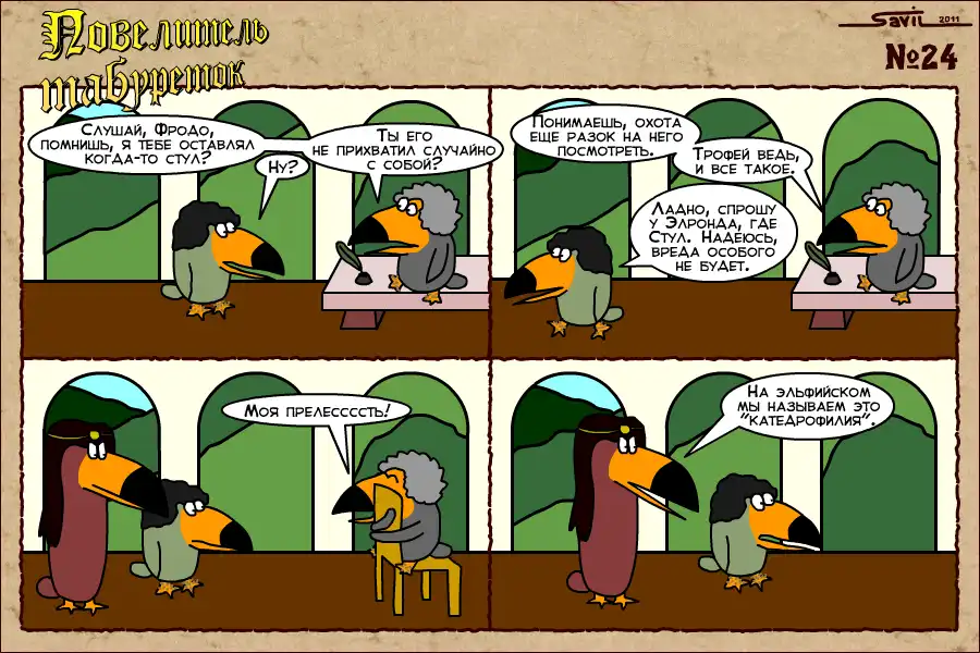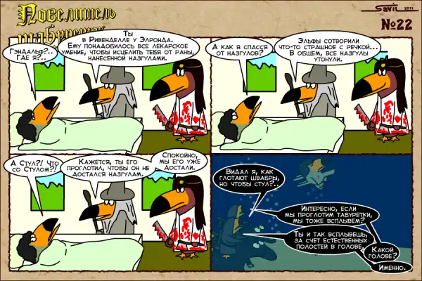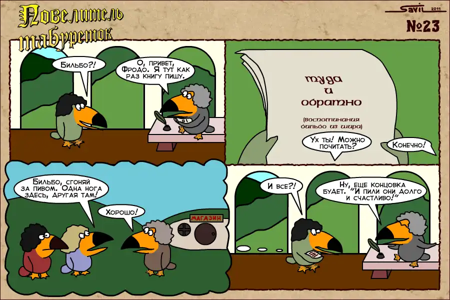 Для всякой вселенной существует альтернативная вселенная. Из чего следует, что для всякой альтернативной вселенной тоже существует альтернативная вселенная. И, значится, в одной из версий многострадального Средиземья Саурон сдуру выковал вместо кольца Стул Всевластья. А в остальном все осталось по-прежнему, и никто не пострадал. За исключением, разве что, хоббитов, которым этот стул теперь переть черт знает куда.