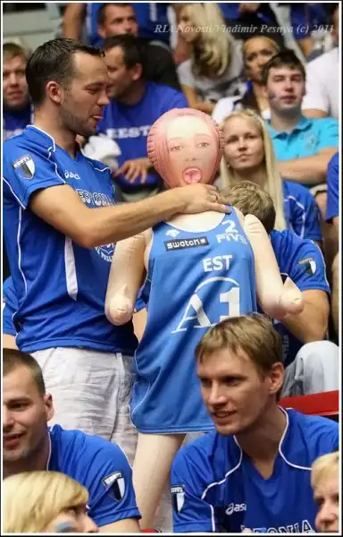 Со стороны эстонских болельщиков была замечена очень странная персона, которая поддерживала игроков с трибуны.