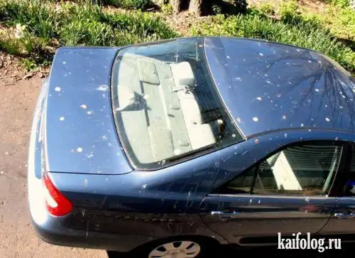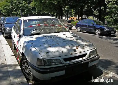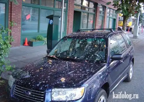 Парковаться под деревьями очень опасно. Это вы поймете сами, когда посмотрите приколы про обосранные авто. А самое главное, если вдруг подобный казус произойдет с вашей машиной, не стоит сильно огорчаться. Ведь, есть очень верная русская примета: гамно - к деньгам. Вобщем ищите во всем позитив и надежное место для вашей тачки, если не хотите ее отмывать. :)