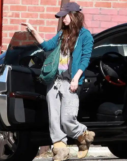 Видимо, у Фокс с утра так сильно урчало в брюхе, что она побыстрее надела первое попавшееся под руку, чтоб добраться до любимой забегаловки. И плевать, что подумают люди! А публика подумала, что Меган сошла с ума. Растянутая мятая фуфайка, серые, свисающие спортивные штаны, синяя кофта и замшевые угги с меховой отделкой и помпонами. Дополняли комплект зеленая сумка и потрепанная сиреневая бейсболка. В таком виде звезда прошествовала от машины к дверям заведения, шокировав прохожих и папарацци.