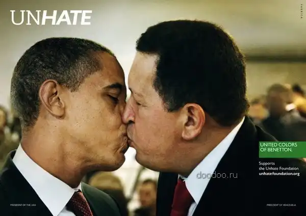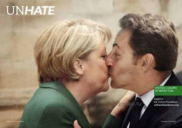 Эти плакаты появились на улицах крупнейших городов мира. Бенеттон заставил целоваться политиков, которые не оч переваривают друг друга.