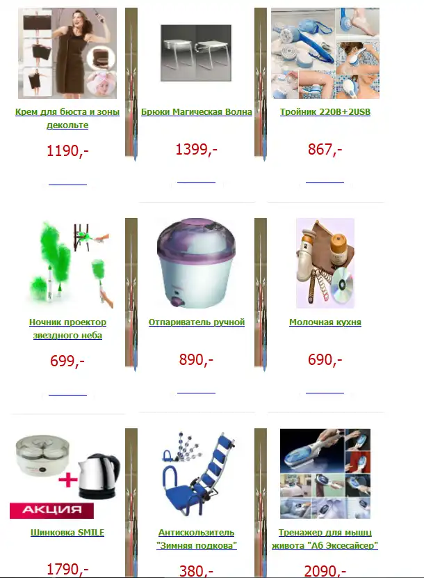 Здесь просто прелестные наименования) Я вот например не знаю, как должен выглядеть ручной отпариватель (что отпаривать, тоже не знаю), потому склонен поверить, что это он. И что тройник 220В встроен в лейку душа-при должной фантазии поверить можно)