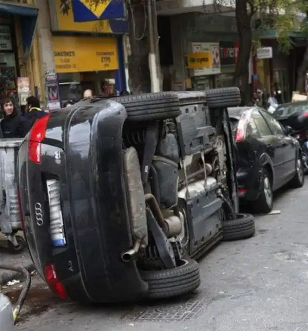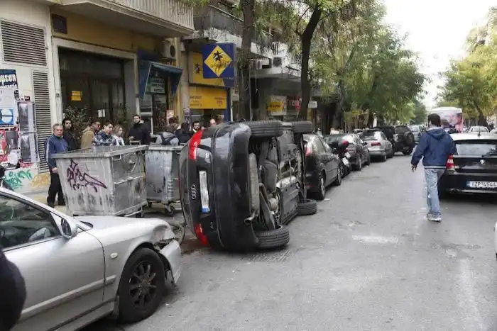 В Афинах автолюбитель на Audi A3 припарковался напротив мусорных баков.