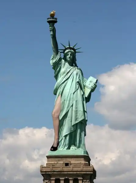 Актриса Анджелина Джоли, продемонстрировавшая во время церемонии вручения наград на церемонии «Оскар» обнаженную правую ногу благодаря высокому и широкому вырезу черного платья от Atelier Versace, мгновенно буквально «взорвала» интернет. Правая нога звезды стала настоящим интернет-мемом. У нее появился даже свой собственный аккаунт в сети микроблогов Twitter – @AngiesRightLeg – который мгновенно набрал тысячи читателей. Более того, в интернете появилось огромное количество отфотошопленных изображений Той Самой Ноги – как правило, в виде коллажей. Нога Джоли украсила Статую Свободы и других всемирно известных памятников, появилась на фотографиях политиков, репродукциях картин, плакатах с изображением популярных персонажей. Предлагаем вашему вниманию самые забавные из них.