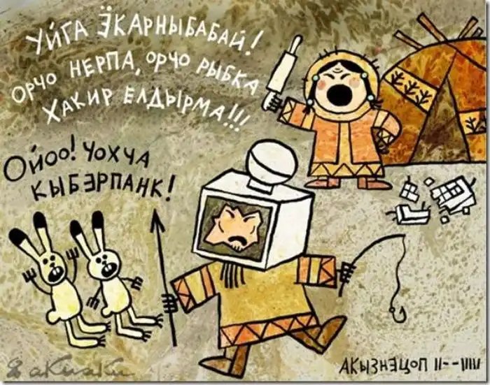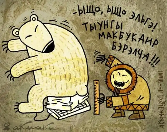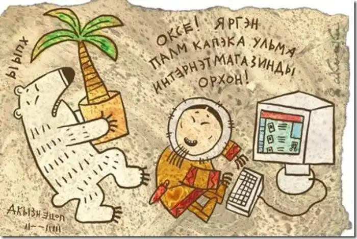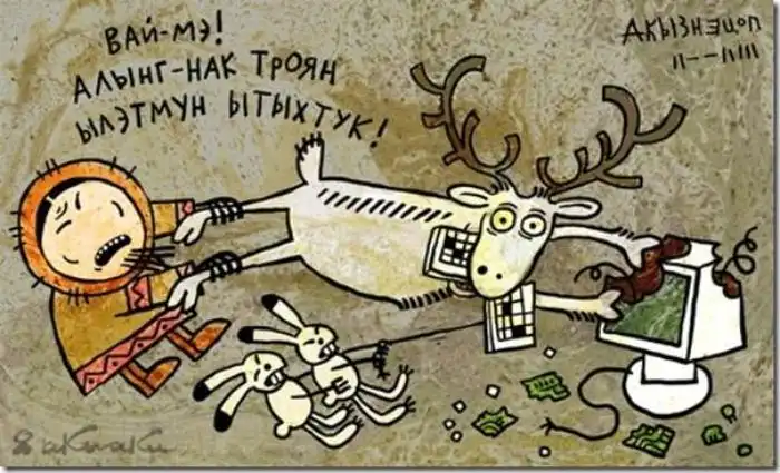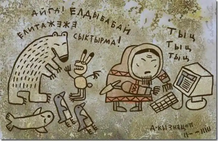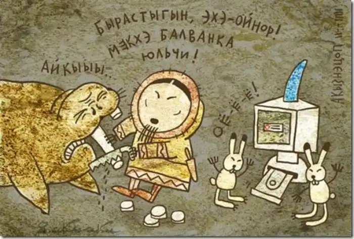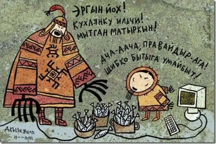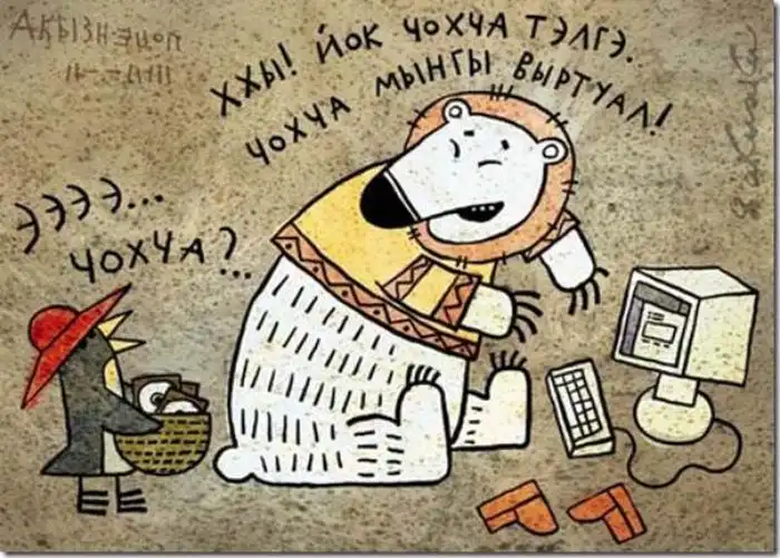 Прикольные рисунки про обычного шамана, который пытается работать за компьютером.