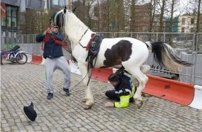 Наверное, это первый случай, когда транспортное средство напало на полицейского ;)