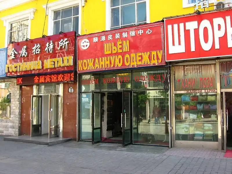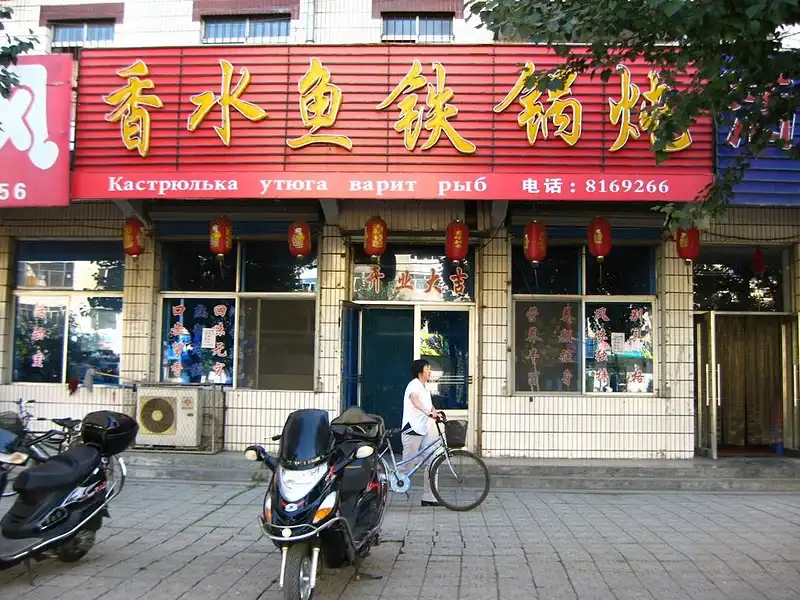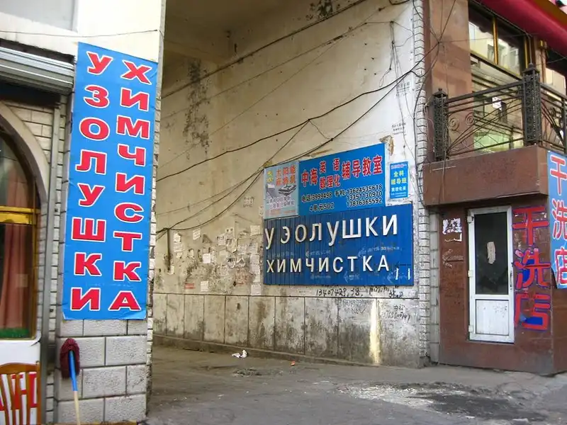 Поскольку прироссийские китайцы часто общаются с русскими по работе и не только, то придумывают себе разные русские имена. Скажем, живёт какой-нибудь Сам Сунь х*юнь, а нашим согражданам представляется, как Вася, или Стёпа. Вывески на русском языке, это, пожалуй, самая большая достопримечательность приграничных городов. Фотографировать все возможные ошибки в этих вывесках, это никакой памяти на карточке не хватит. Но среди них попадаются настоящие шедевры. Иногда кажется, что китайцы специально так коряво пишут, чтобы развеселить русских, и тем самым привлечь их к себе в магазин.