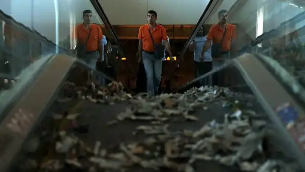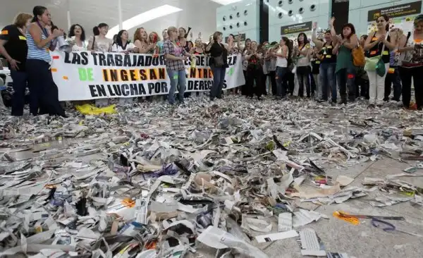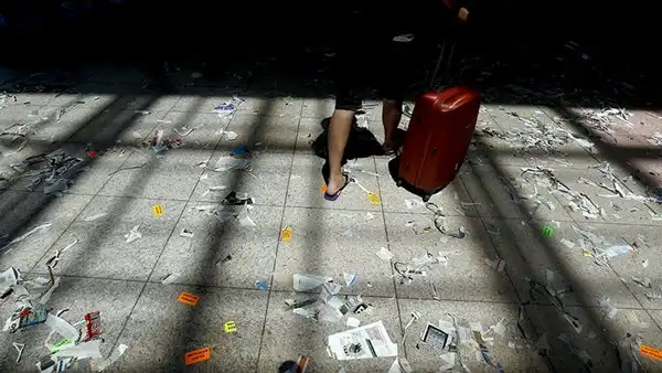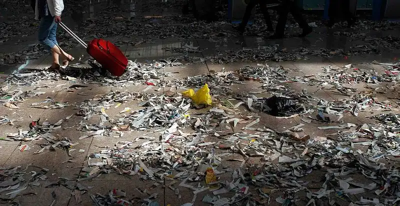 Это акция протеста сотрудников, занятых уборкой мусора а в аэропорту.
