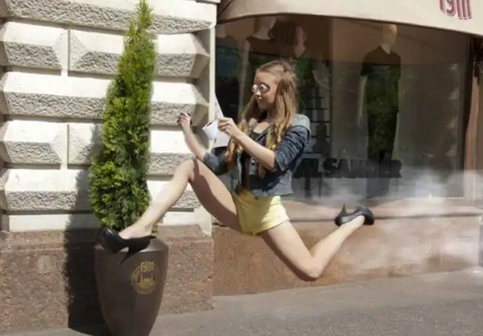 Смешная фотожаба на "девушку в полете"