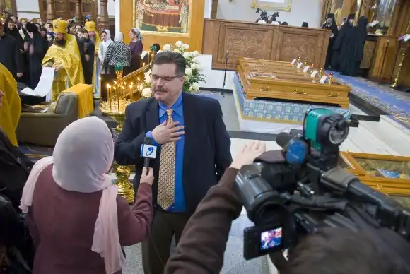 В октябре 2009 года на Донбасс прибыли Сергей Георгиевич Кальфов с супругой и ключарь Сан-Францисского собора протоиерей Петр Перекрестов. Они прилетели, чтобы передать в дар Свято-Успенской Святогорской Лавре уникальную реликвию, которая тридцать лет хранилась в семье Кальфовых.
